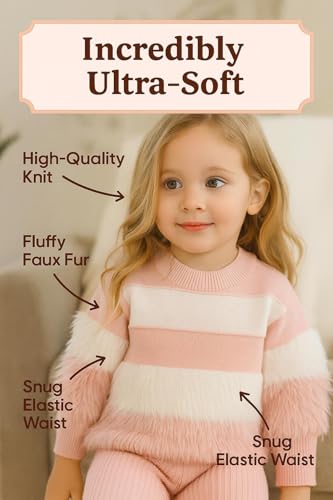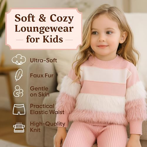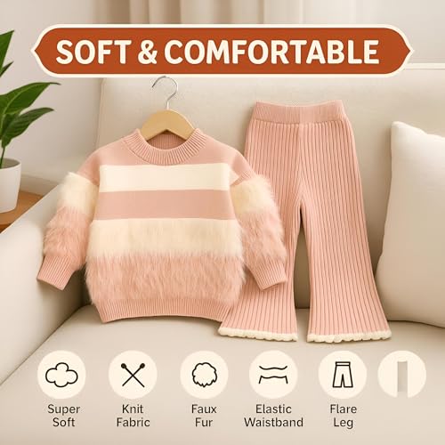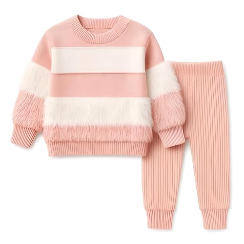 Generic - ملابس محبوكة للبنات - طقم مريح من قطعتين مع سترة بلون سادة وسروال واسع لفصلي الخريف والشتاء