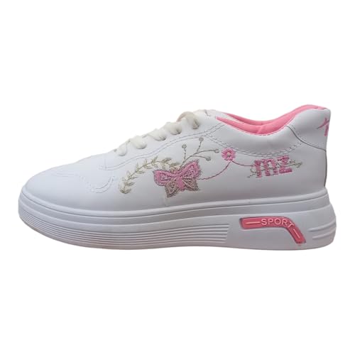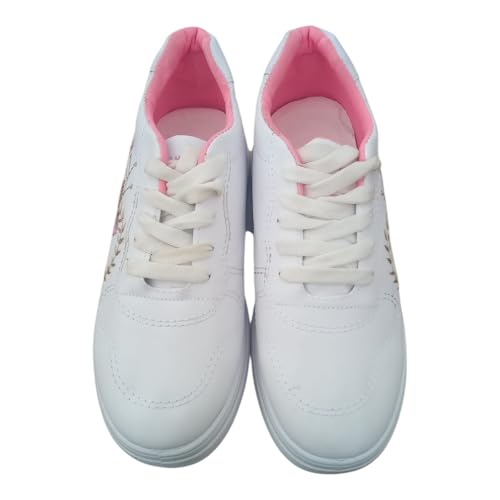 Generic - حذاء رياضي كلاسيكي من الجلد للبنات، أبيض، للمشي والأنشطة الخارجية