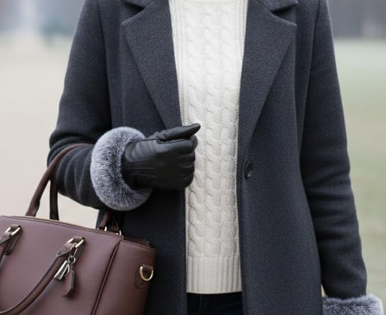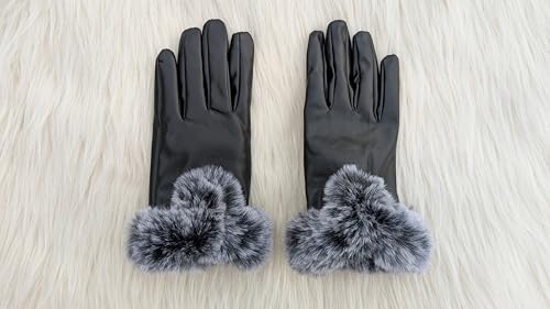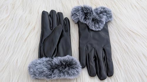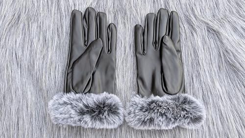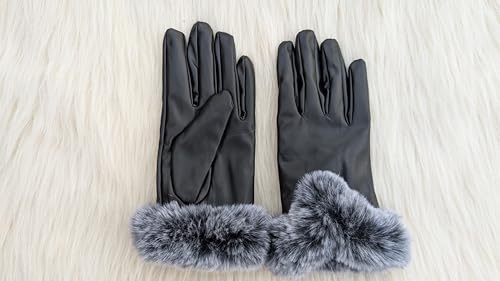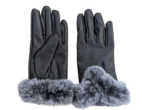 Generic - قفازات جلدية للفتيات بمعصم فرو ناعم جوانتى مبطن مناسب للبنات حتى سن 12 عام