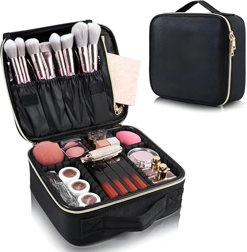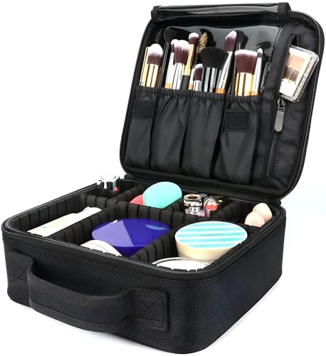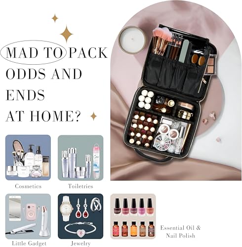 Generic - منظم مكياج للبنات - مصمم مع مساحات تخزين متعددة لأدوات التجميل، جزء خارجي مقاوم للماء، سطح سريع التنظيف، صغير الحجم ولكنه واسع للمنزل او السفر باللون الاسود