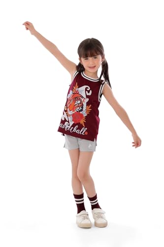 ANJA - تيشرت بدون أكمام لكرة السلة بتصميم نمر - بلوزة رياضية للبنات، لون نبيتي