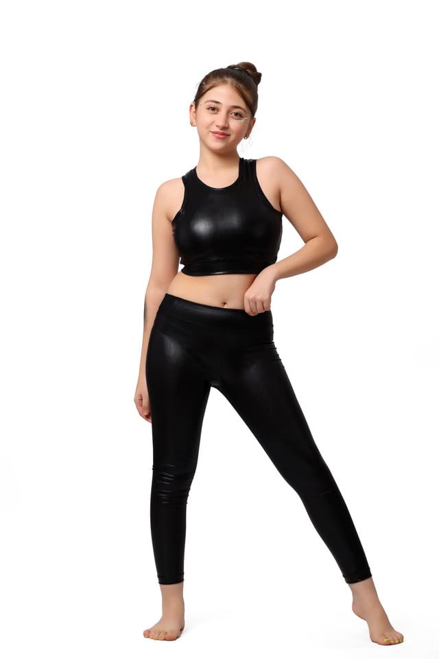 ANJA - طقم جمباز معدني للبنات - بلوزة قصيرة رياضية للبنات مع شورت وسروال ضيق