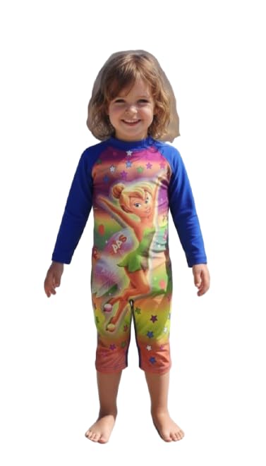 Generic - بدلة سباحة للبنات من قطعة واحدة بطباعة شخصية واكمام قصيرة بلون ازرق