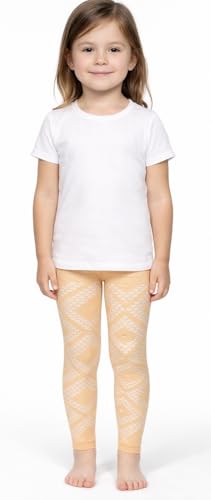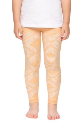 Generic - بنطلون لجينجز منقوش للبنات بتصميم شبكي ماسي الشكل، بناطيل ضيقة مواكبة للموضة للأطفال بعمر 6 سنوات، بيج