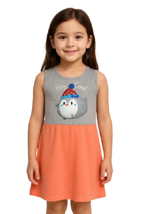 Generic - فستان بناتي بياقة دائرية تطريز علي الصدر