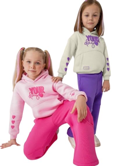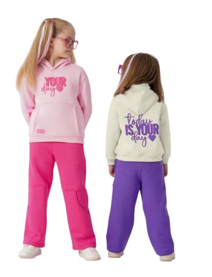 Generic - طقم بناتي قطعتين هودي بينك و بنطلون فوشيا - خامة ميلتون - مقاس من 4 سن الي 6 سن - كود 1067