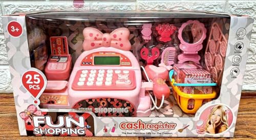 Generic - مجموعة ألعاب كاشير للتسوق المرح مكونة من 25 قطعة تتضمن كاشير نقود أنيق وسلة تسوق واكسسوارات تجميل وسكانر يصدر الأصوات والأضواء