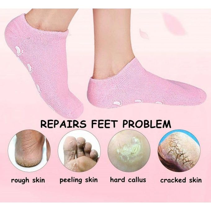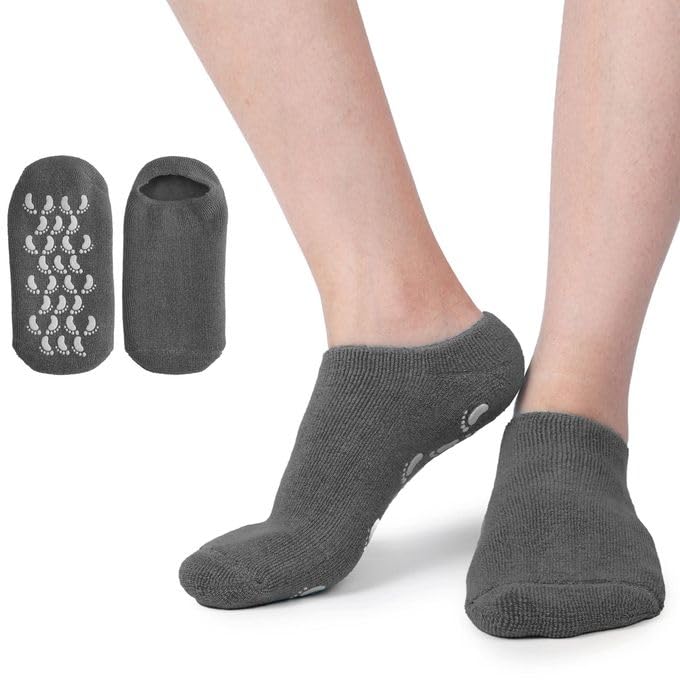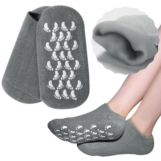 Generic - شراب بناتي جيل السيليكون لترطيب القدمين – جوارب قطنية طبية غنية بالزيوت العطرية وفيتامين E لعلاج جفاف وتشققات الكعبين والحصول على أقدام ناعمة كالحريرلون رصاصي