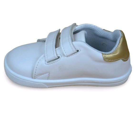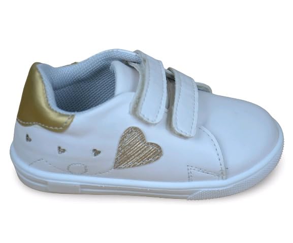 Generic - حذاء رياضي للبنات، ابيض مع تفاصيل قلب ذهبية، اغلاق حلقي، حذاء كاجوال 78-3076