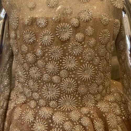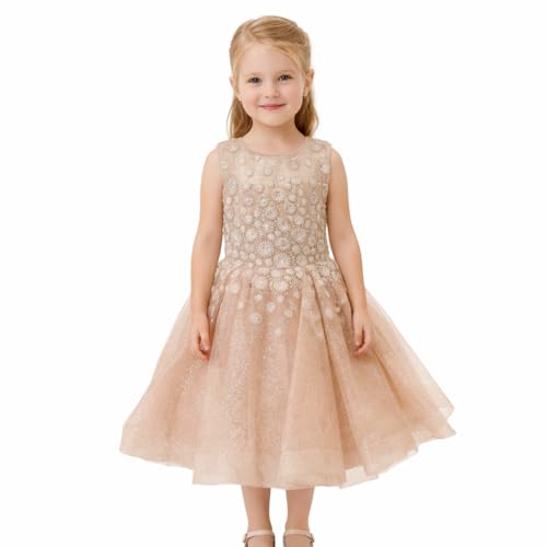 Generic - فستان بناتي سواري يلبس(5-6) سنوات تول لامع مطرز للأطفال – فستان حفلات وأعياد منفوش للبنات لون شامبين فاخر