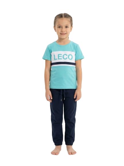 generic - بيجامة قطنية صيفية للبنات، بلوزة مع بنطلون اسود، طقم نوم كاجوال باكمام قصيرة، للاعمار من 4 الى 10 سنوات، قطعتين