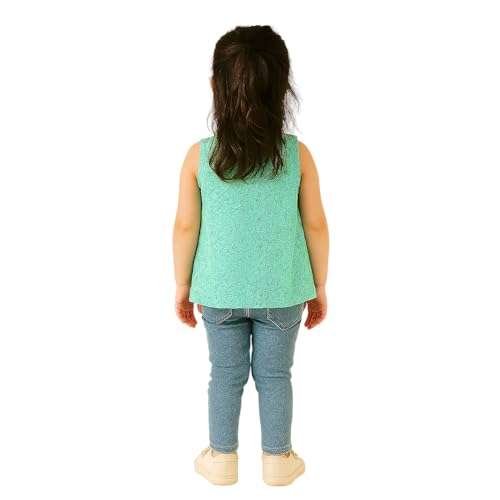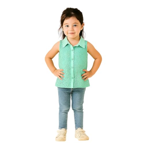 Generic - بلوزة دانتيل صيفية للبنات، قطعتين، لون فيروزي، مقاسات ١-٦ سنوات