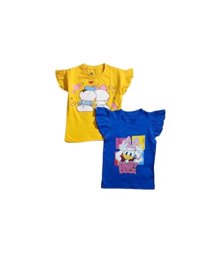 Generic - طقم تي شيرت للبنات، أصفر وأزرق، أكمام مكشكشة، عبوة من قطعتين