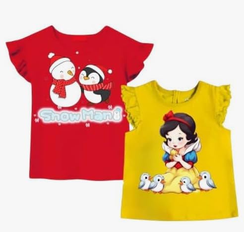 Generic - تيشيرتات للبنات، احمر واصفر، عبوة من قطعتين