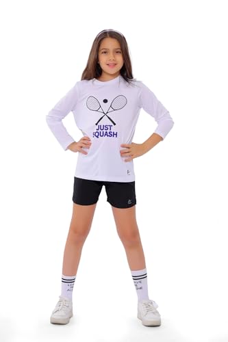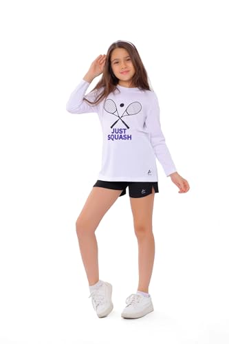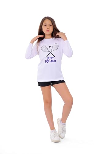 ANJA - تي شيرت بناتي مطبوع عليه اسكواش ابيض - بلوزة رياضية باكمام طويلة