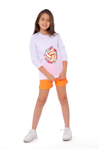 ANJA - تي شيرت بناتي ابيض مطبوع عليه رسومات الكرة الطائرة - بلوزة رياضية باكمام طويلة