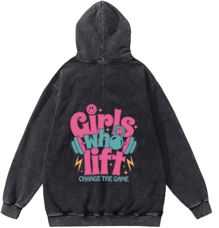 Generic - سويت شيرت بغطاء للرأس مطبوع عليه عبارة Girls Who Lift Change The Game