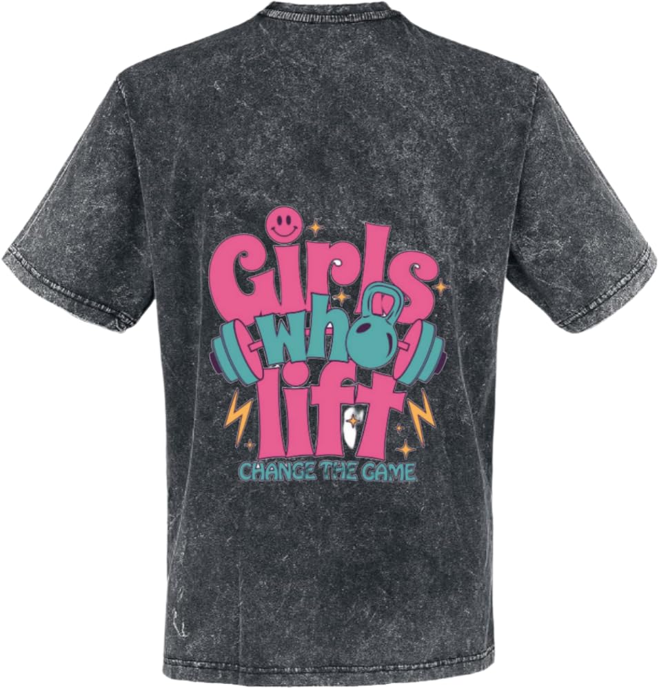 Generic - تيشرت مطبوع عليه Girls who lift. Change the game مغسول