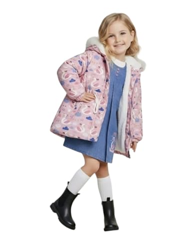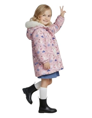 Generic - جاكيت شتوي للبنات، بينك مع طباعة قلب، غطاء رأس من الفرو الصناعي، معطف مبطن دافئ