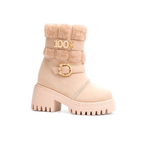 Generic - بوت شتوي للبنات من الفرو بسوستة جانبية، حذاء أنيق للأطفال بطول الكاحل مع نعل مضاد للانزلاق للارتداء اليومي (100 بيج)
