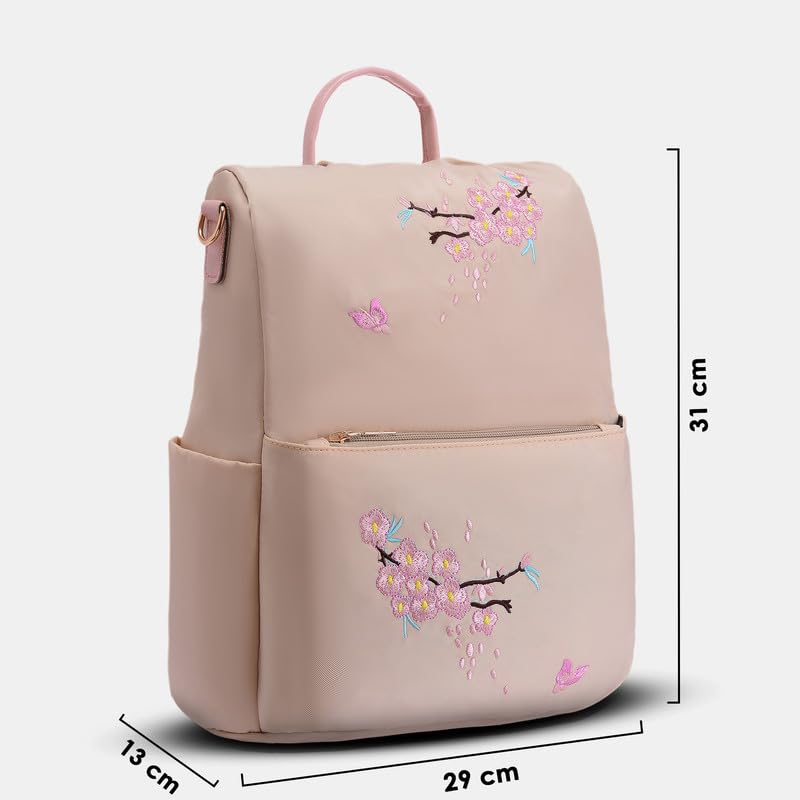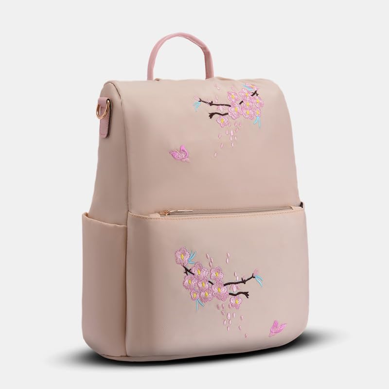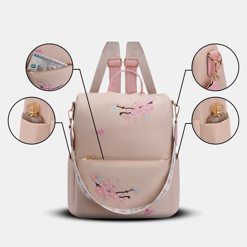 Girly - شنطة ظهر مطرزة، تصميم ناعم بنقشات الزهور والفراشات، قماش مقاوم للماء ووزنه خفيف، منظم بجيوب متعددة للمدرسة أو السفر أو العمل مع أحزمة قابلة للتعديل ومريحة للبنات