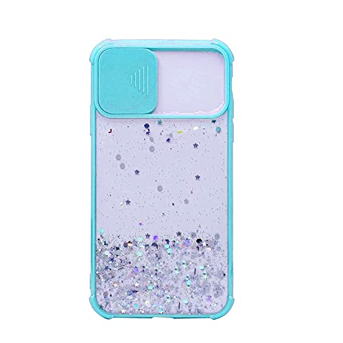 Generic - جراب حماية خلفي بتصميم جليتر بناتي واشكال نجوم لامعة مع واقي منزلق للكاميرا لموبايل ريلمي 8/ 8 برو - ازرق سماوي، البولي كربونات