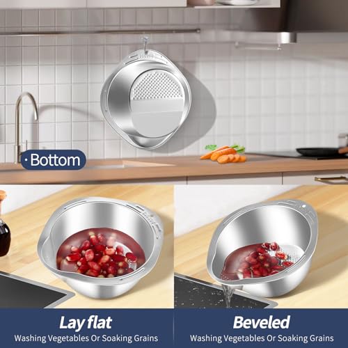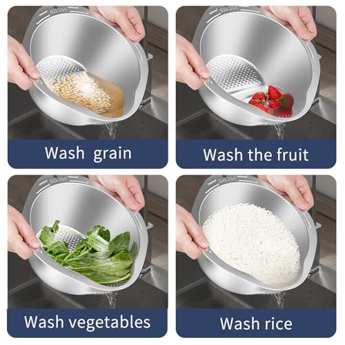GIUOIDUO - وعاء مصفاة غسيل 4 في 1 للكينوا من جيويدوريس، مصفاة صغيرة من الستانلس ستيل مع مصفاة جانبية لتنظيف الفواكه والخضروات والفاصوليا - اداة مطبخ متعددة الاستخدامات