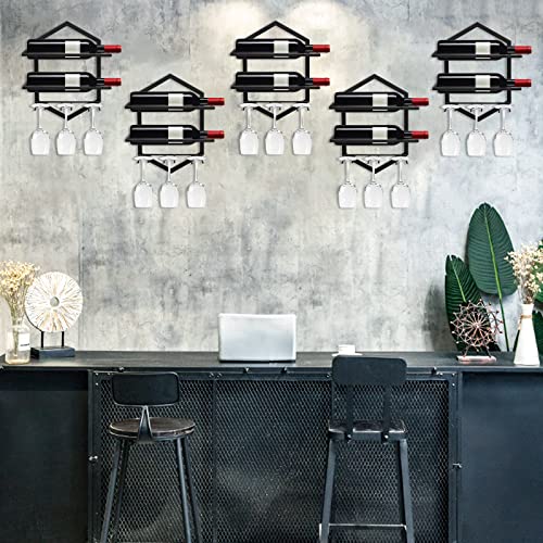 Giyiprpi - رف حامل زجاجات مشروبات معدني يثبت على الحائط، يكفي المنظم لحمل زجاجتين وحامل 3 كؤوس متضمن، لديكور المنزل والمطبخ والبار (أسود 1)