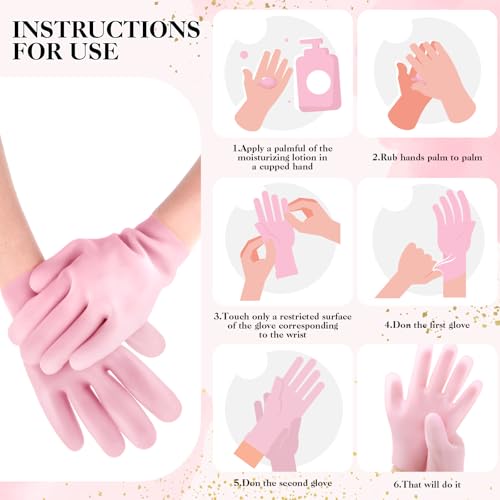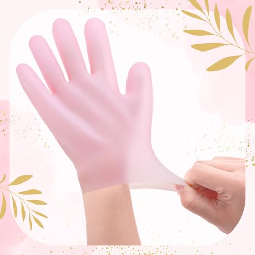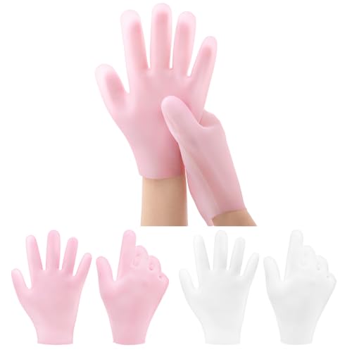 Gjinxi - زوجان من قفازات السيليكون لليدين الجافة والمتشققة مرطّبة للنساء، قفازات عناية باليدين من السيليكون، قفازات جل سبا للعناية باليدين بعد الباديكير من جينكسي، اللون: وردي وأبيض