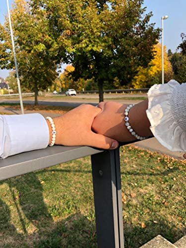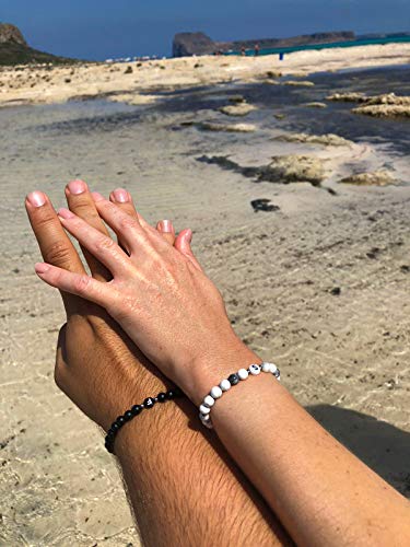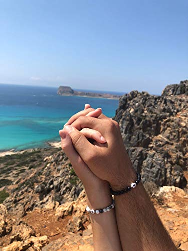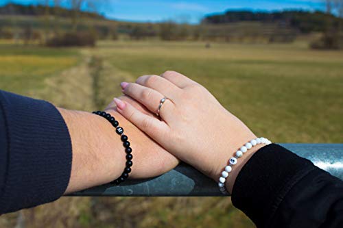 Glückschmiede - سوار من اللؤلؤ الأسود المطفي من جلوكشميد، سوار صداقة للزوجين، عقد لؤلؤ أونيكس للنساء والرجال والأطفال