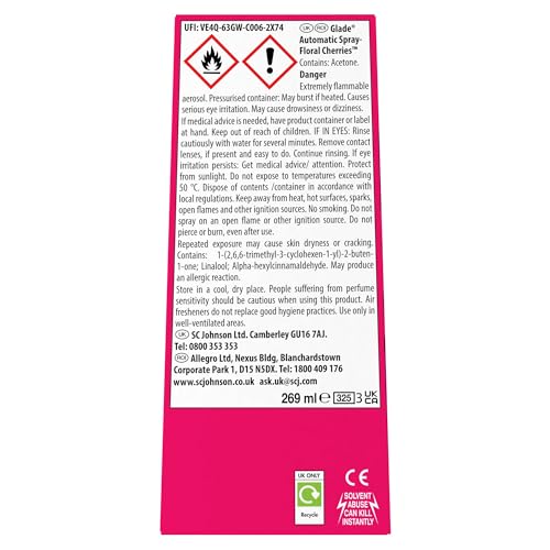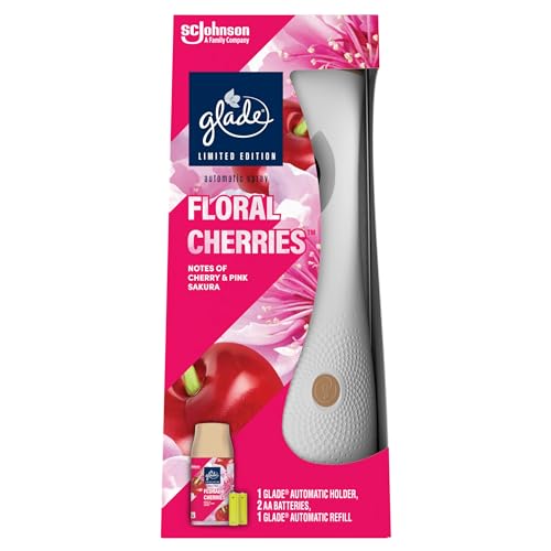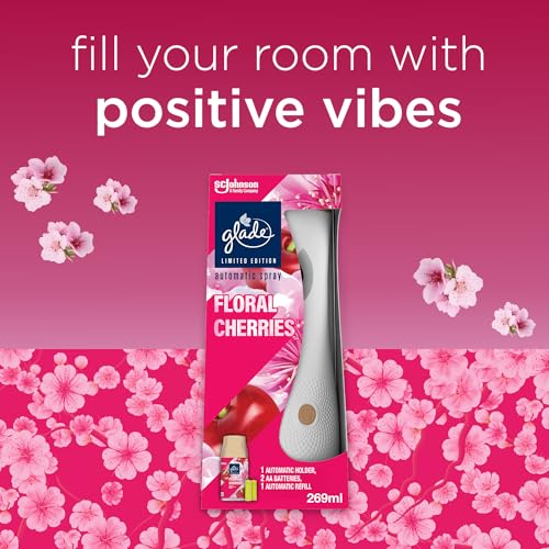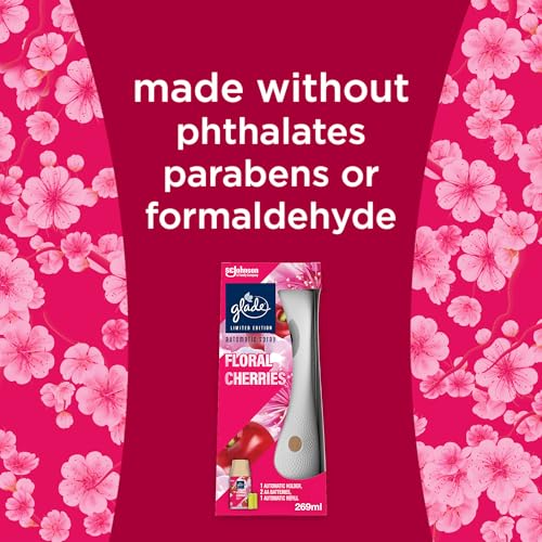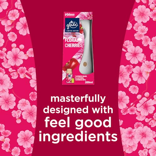 Glade - غليد حامل معطر جو اوتوماتيكي قابل لاعادة التعبئة، عطر يدوم طويلا غني بالزيوت العطرية والكرز الزهري، مجموعة للمبتدئين، (1 × حامل وعبوة اعادة تعبئة 269 مل)