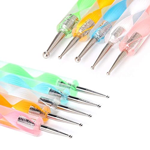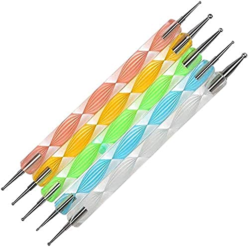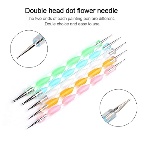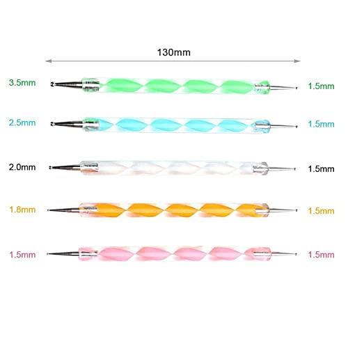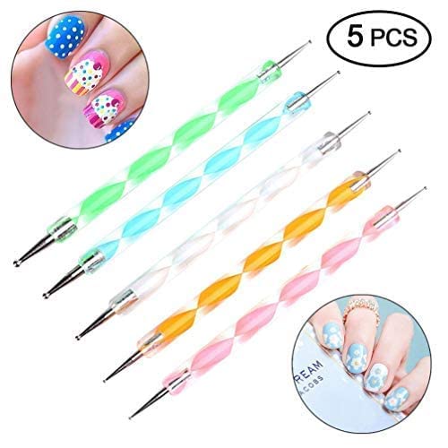 GLAITC - ادوات لفن تصميم وطلاء ورسم وزخرفة ونقش وتنقيط الاظافر اقلام لعمل شكل رخامي باطراف مزدوجة لكلا الاتجاهين رسومات دقيقة على وتزيينها عدد 5 الوان