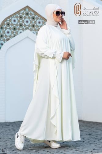 GLAMIA - عباية فراشة بيضاء من قطعتين للعمرة من جلاميا تناسب مقاسات 85-95 كجم. -112