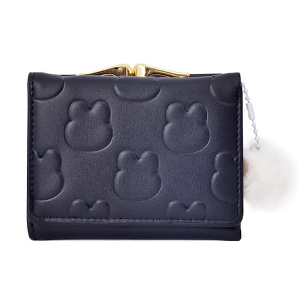 GLAMIA - محفظة صغيرة للنساء من جلاميا، نمط زهور منقوش، قطع معدنية ذهبية، حلية بوم بوم 41 (اسود)