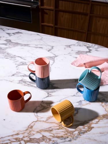 - ✅【ألوان جذابة ومبهجة】يأتي المج بمجموعة متنوعة من الألوان اللامعة التي تضيف لمسة حيوية وبهجة على المائدة، ويضفي عنصر التنوع عند اختيار اللون العشوائي لكل قطعة، مما يجعل كل استخدام تجربة فريدة، مع إمكانية دمجه بسهولة مع أطقم تقديم أخرى، وإضافة لمسة ديكور مميزة على أي طاولة أو مكتب بشكل ممتع وأنيق. 🌈