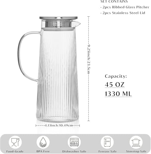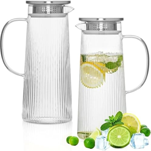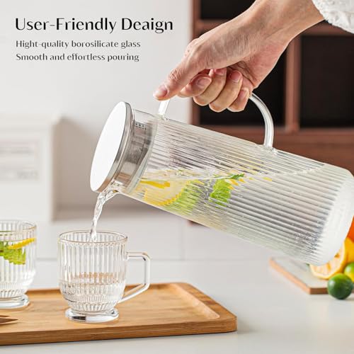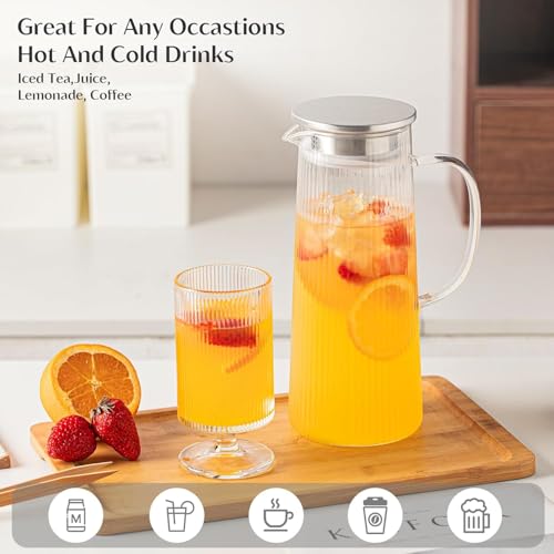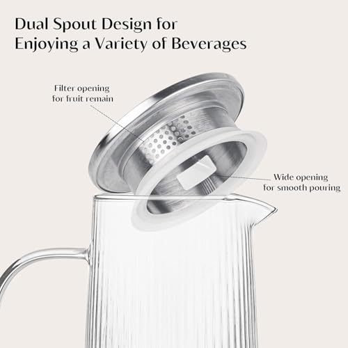 - إبريق زجاجي عالي الجودة مع غطاء محكم يحافظ على المشروبات طازجة ويمنع التسرب