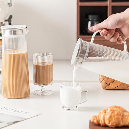 Generic - قارورة زجاجية بمقبض مريح وغطاء محكم – إبريق لتقديم الشاي المثلج، عصائر الليمون، القهوة الباردة والمشروبات الباردة (2)