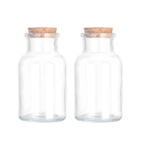 Generic - زجاجات زجاجية - برطمانات دائرية مقاومة للانسكاب بفوهة واسعة مع سدادات من الفلين للزيوت والتوابل والاستخدام متعدد الاستخدامات، عبوة من حاويتين أنيقتين