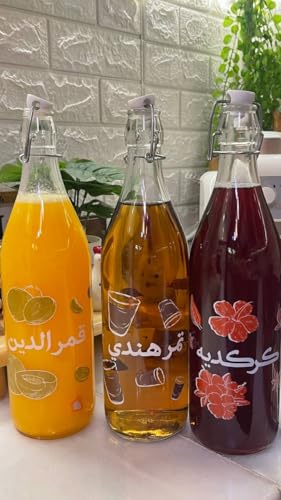 Generic - زجاجات زجاج بكبسولة معدنية مع طباعة عربية، سعة 1 لتر، عبوة من قطعتين، تصميم رمضاني