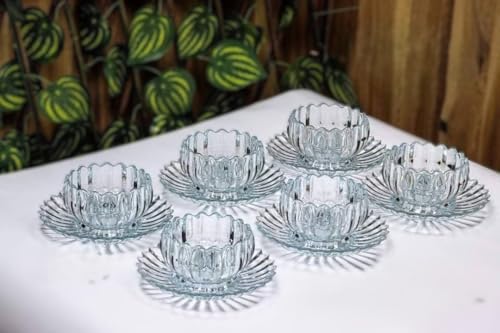 Generic - طقم اوعية زجاجية وطبق سفلي من 12 قطعة، 6 اوعية مع 6 اطباق سفلية متطابقة، تصميم كريستال شفاف