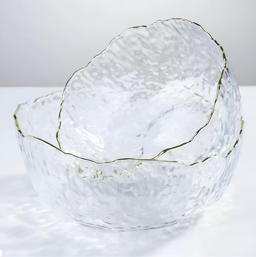 Generic - بولات تقديم زجاجية أنيقة من 3 قطع، بحافة ذهبية بشكل غير منتظم فريد، للسلطات والشوربات والفواكه والحلويات لتقديم الطاولة