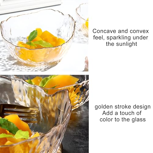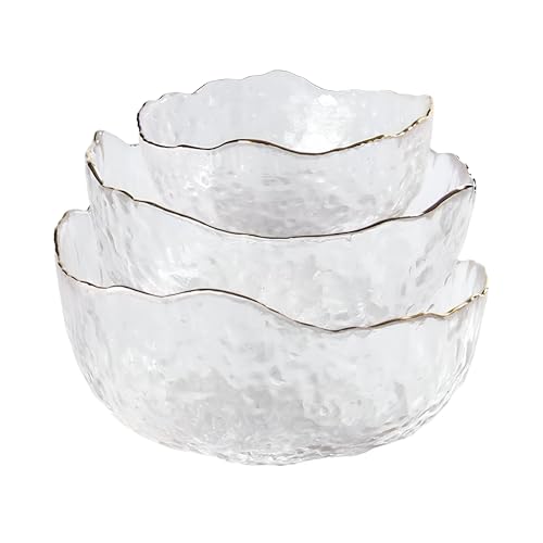 Generic - اوعية زجاجية - مجموعة من 3 حاويات كبيرة شفافة لتقديم السلطة والفواكه بتصميم عضوي بحواف ذهبية للخلط والمعكرونة والفشار والوجبات الخفيفة والعرض الانيق