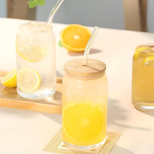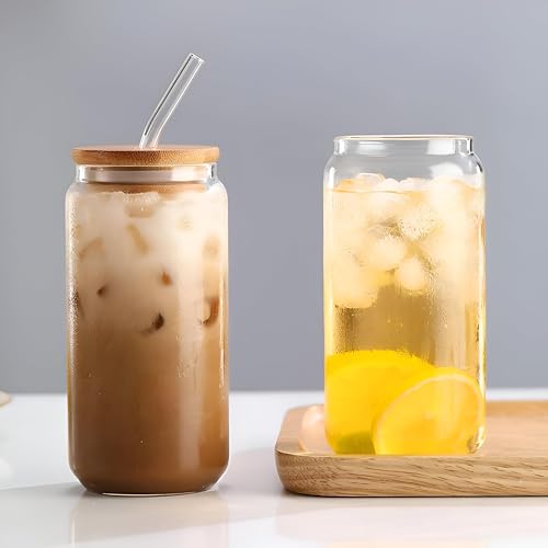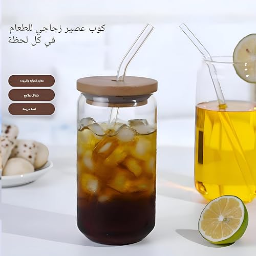 Generic - اكواب شرب زجاجية شفافة سعة 470 مل مع غطاء من الخيزران وماصة زجاجية، مثالية للقهوة المثلجة والعصائر والكوكتيلات، عبوة من قطعتين للمنزل او الحفلات