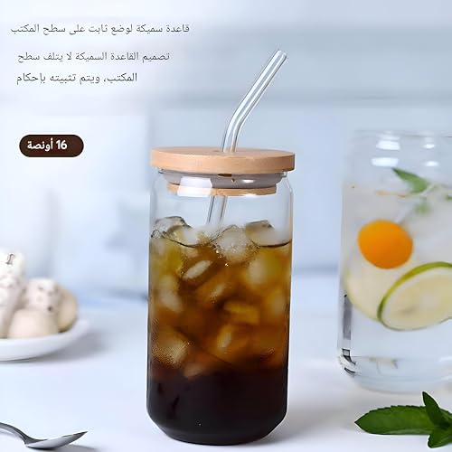 - تحتوي كل مجموعة على كوبين بسعة 470 مل مجهزين بأغطية من الخيزران الطبيعي وماصات زجاجية متينة، مما يضمن تجربة شرب مستدامة وغير بلاستيكية تعزز النظافة والأناقة للقهوة المثلجة والعصائر والشاي الفقاعي.