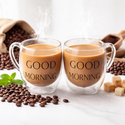 Generic - اكواب قهوة زجاجية، اكواب اسبريسو مزدوجة الجدار مع مقبض، مثالية لشاي لاسبريسو والمشروبات، 350 مل (قطعتين)
