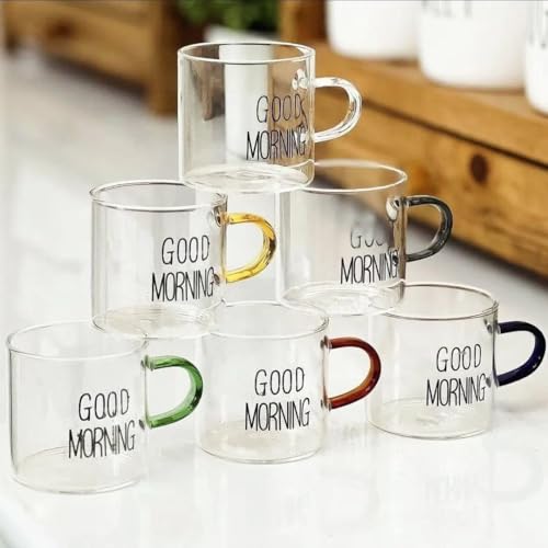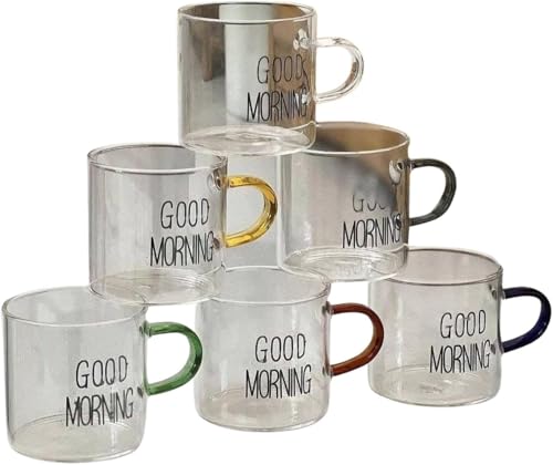 Generic - أكواب قهوة زجاجية من البوروسيليكات، مقاومة للحرارة بمقابض متعددة الألوان، أكواب شاي وقهوة مستوردة، أدوات شرب شفافة أنيقة للاستخدام اليومي، مجموعة واحدة من 6 قطع