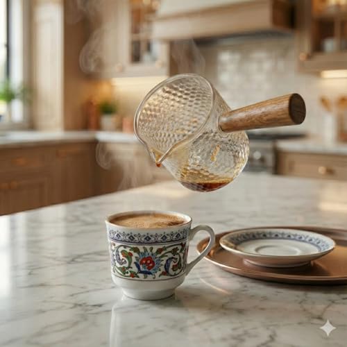 - ▪ كنكة قهوة حرارية من الزجاج تتحمل الحرارة وتوضع مباشرة على النار.