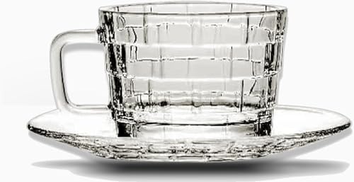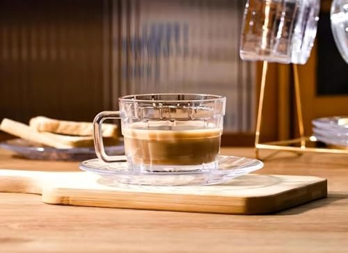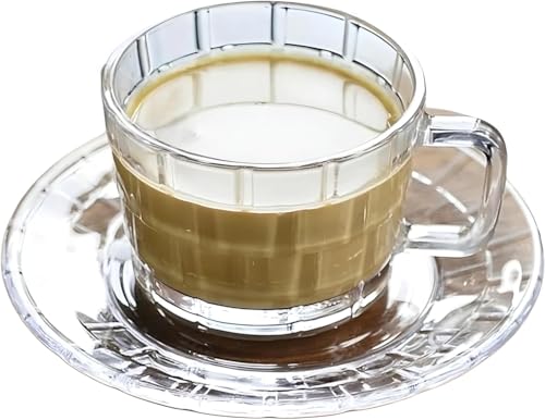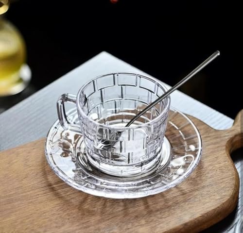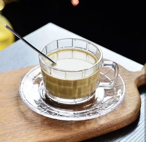 Generic - كوب شاي وقهوة زجاجية، نمط زجاجي شفاف، سعة 240 مل، قطعتين 1 كوب 1 صحن