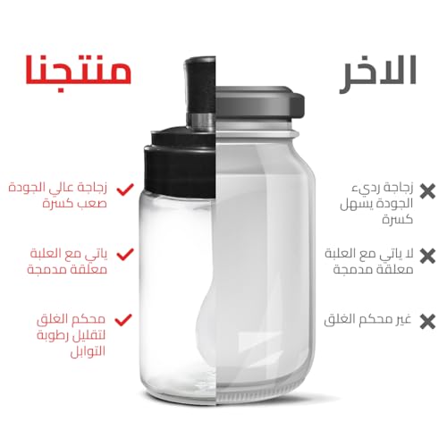 - ملعقة مريحة: يأتي كل برطمان مع ملعقة عملية، مما يجعل من السهل استخراج الكمية المثالية من التوابل دون أي فوضى أو متاعب.
