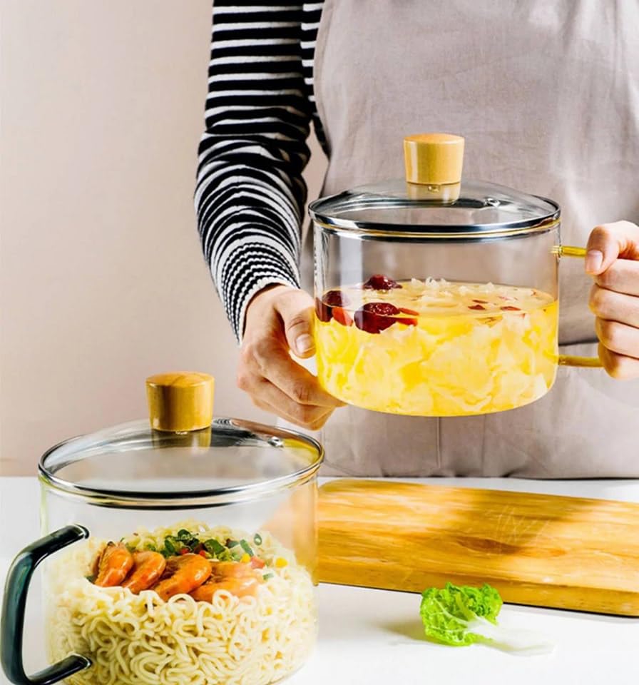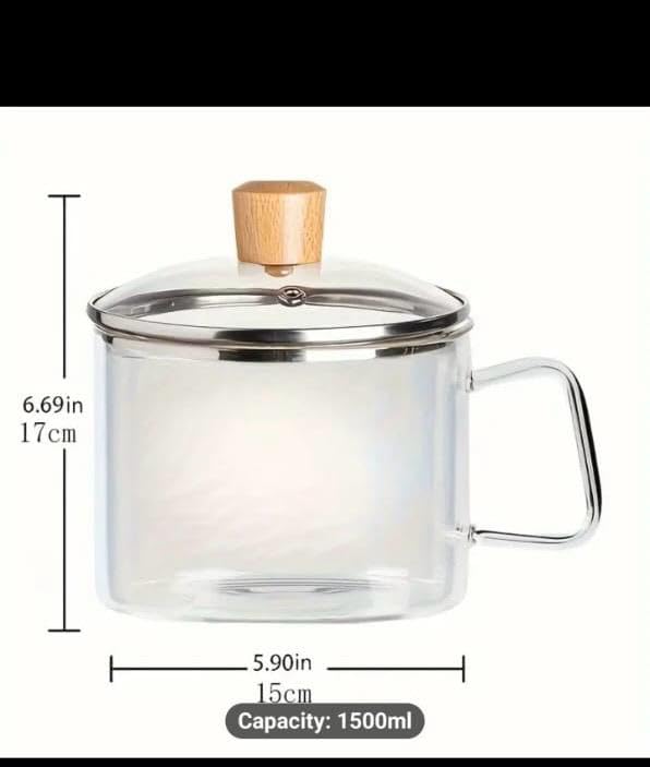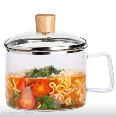 Generic - قدر طبخ مصنوع من زجاج البوروسيليكات، شفاف، غير مطلي، مع غطاء ومقبض. مثالي للسلطة والشوربة والمعكرونة الفورية. يتميز بمقاومة الحرارة العالية